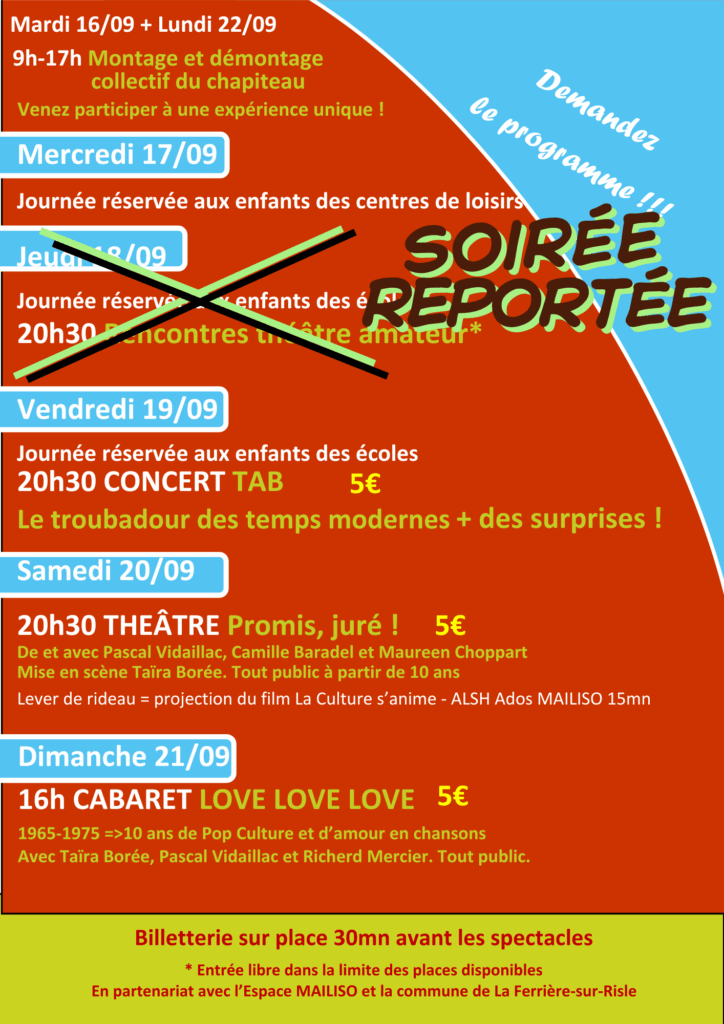 L’équipe, les administrateurs et les bénévoles de l’Espace Mailiso vous souhaitent une très belle fin de semaine et ont hâte de vous retrouver nombreux à la Ferrière-sur-Risle pour le Festival Itinérant !