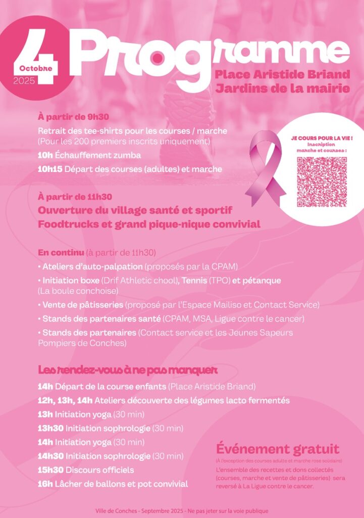 C’est pas tout de suite mais ça vient vite ! Bloquez votre week-end du 4 octobre, on va vous faire voir la vie en rose avec la commune de Conches et plein de partenaires, pour lutter ensemble contre le cancer du sein ! Pour les plus courageux, prévoyez un jogging et des baskets, ça va être sportif ! Pour vous inscrire: RDV sur Hello Asso: 5€ par marche/course, 10€ avec un tee-shirt. Évidemment on reverse tous les bénéfices à la Ligue contre le cancer.