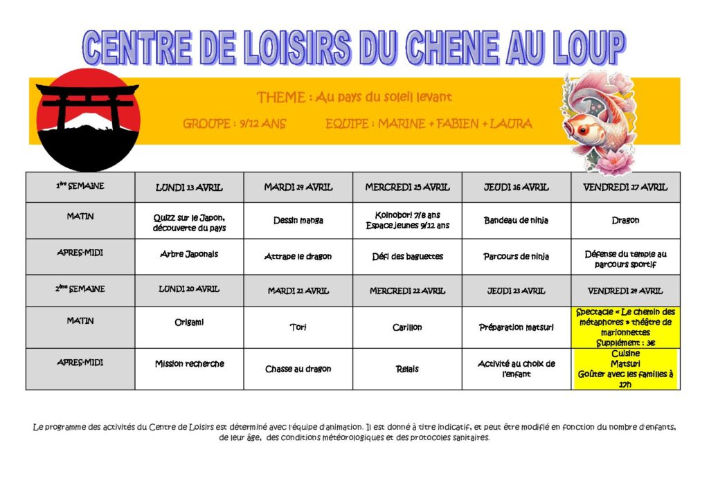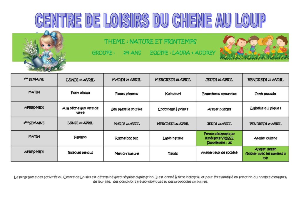 PROGRAMMES VACANCES DE PRINTEMPS